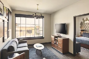 In the heart of Springfield, Hotel Vandivort emerges as a portal to the past, yet infused with contemporary flair. The furnishings not only echo elegance but also resonate with the hotel's distinctive history, especially the dresser that seamlessly integrates a record player and vintage vinyls.