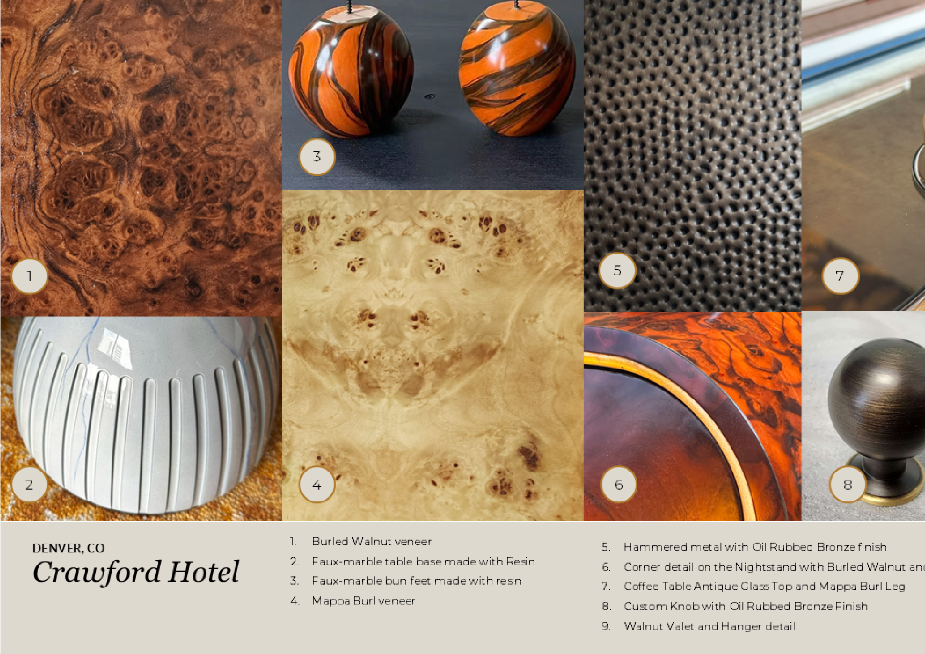 Between the casegoods and seating, CF Kent developed seven wood finishes, six metal finishes, two different faux-stone resins, and an array of custom decorative hardware. The overall project schedule from start to finish took eight months to complete, including a prototype factory review in three months and production orders delivered within six months., You can learn more about this project and our process by downloading the Case Study deck.